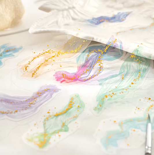 10 Stickers manchas de acuarela con detalles dorados