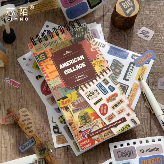 12 Hojas de Stickers Palabras Vintage