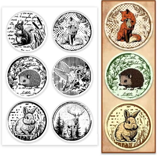 Sellos de Silicon 6 circulos con animales de otoño