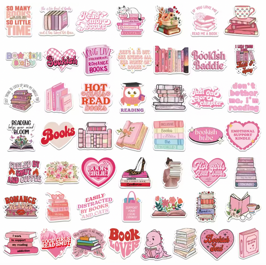 50 Stickers Vinil Books & Love Rosa
