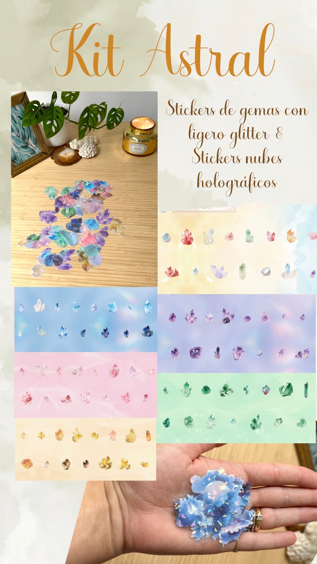 ✨Sobre de stickers holográficos - Nubes