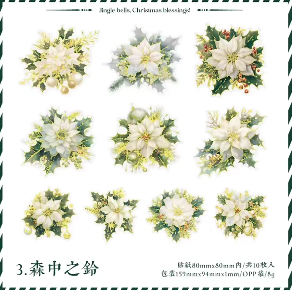10 Stickers Noche Buena con detalles dorados