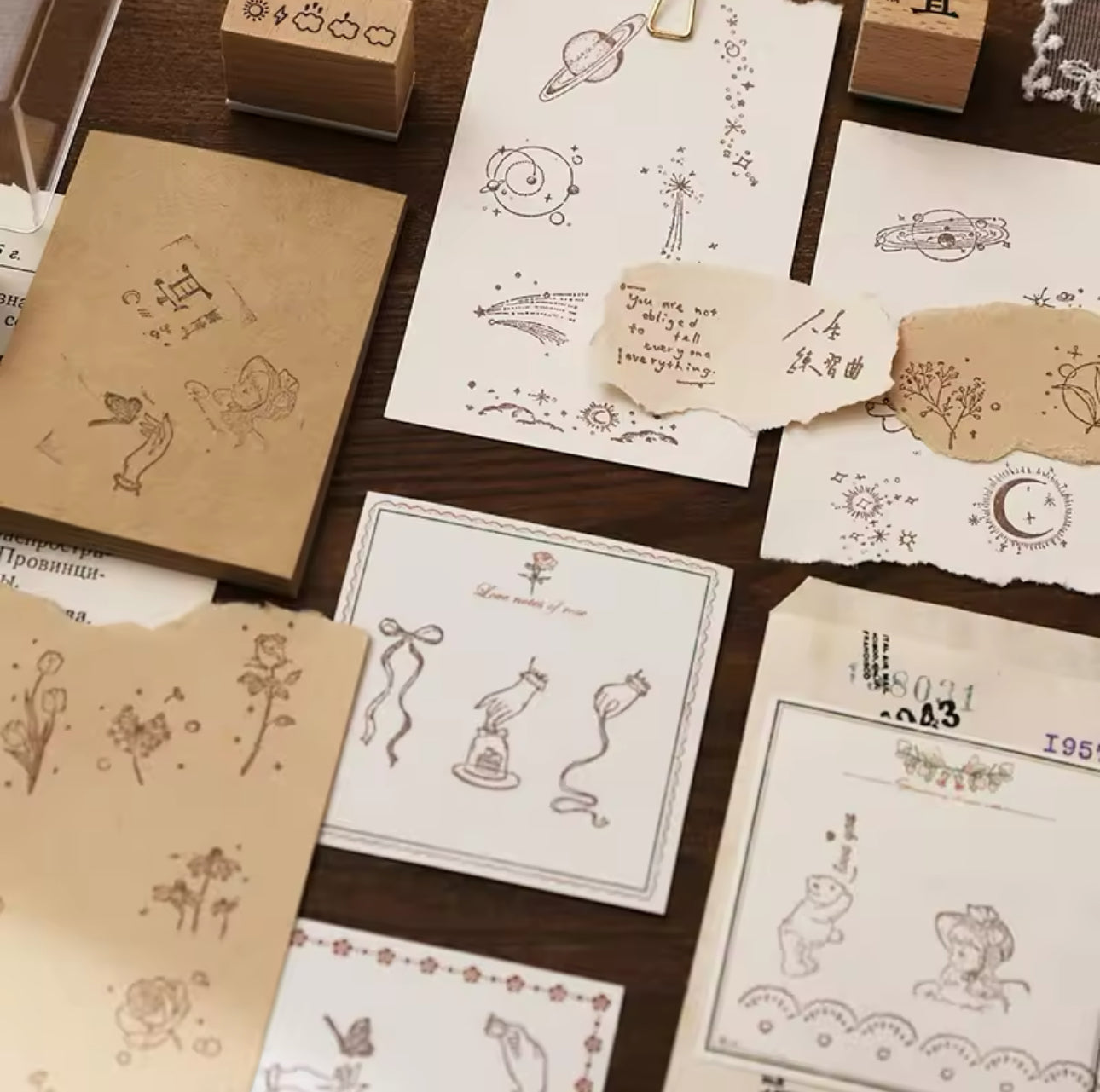 ¡Crea obras de arte únicas con nuestros 12 sellos de madera! Elige entre una variedad de opciones para añadir un toque personal a tus proyectos. ¡Expresa tu creatividad con facilidad y deja tu huella con estos sellos de alta calidad!