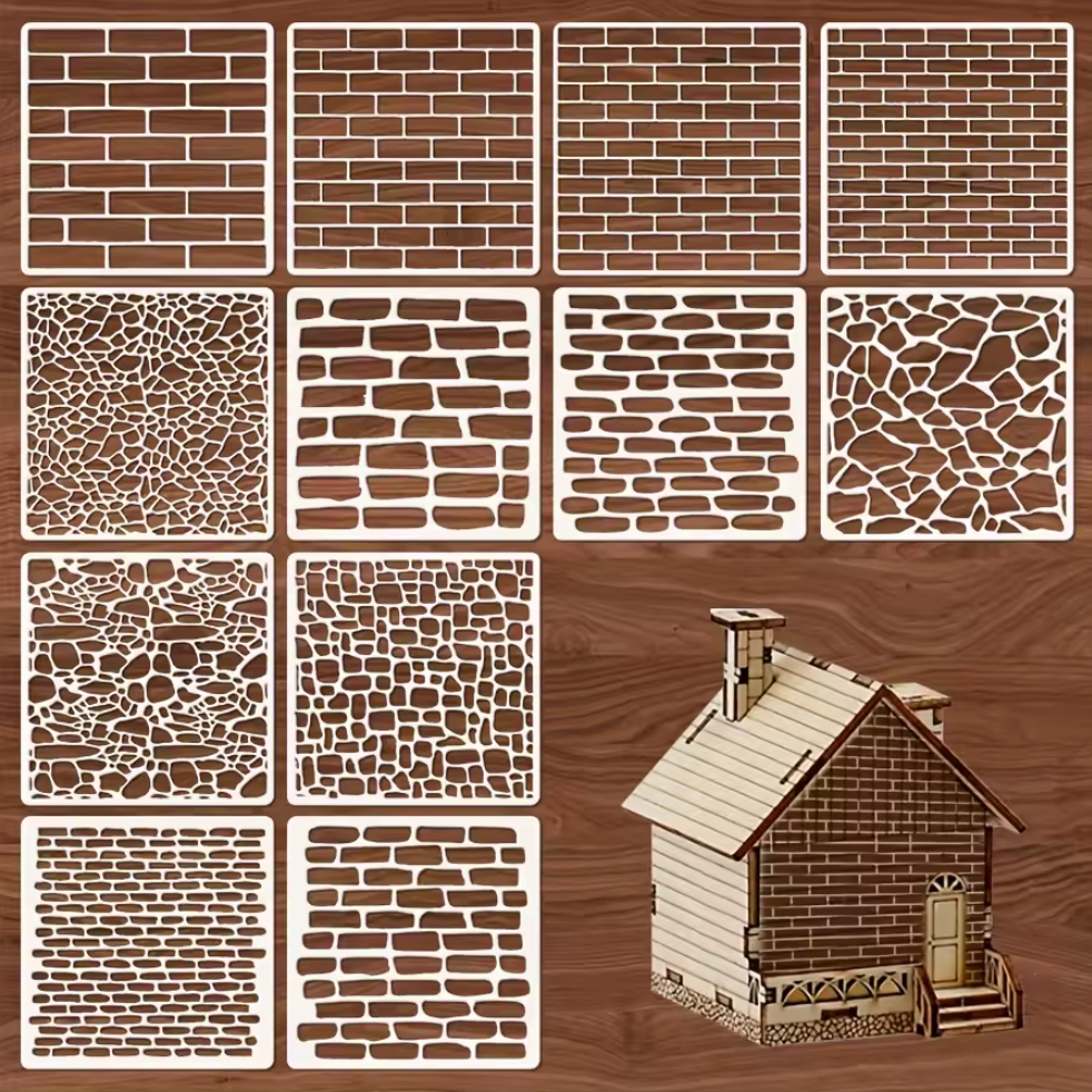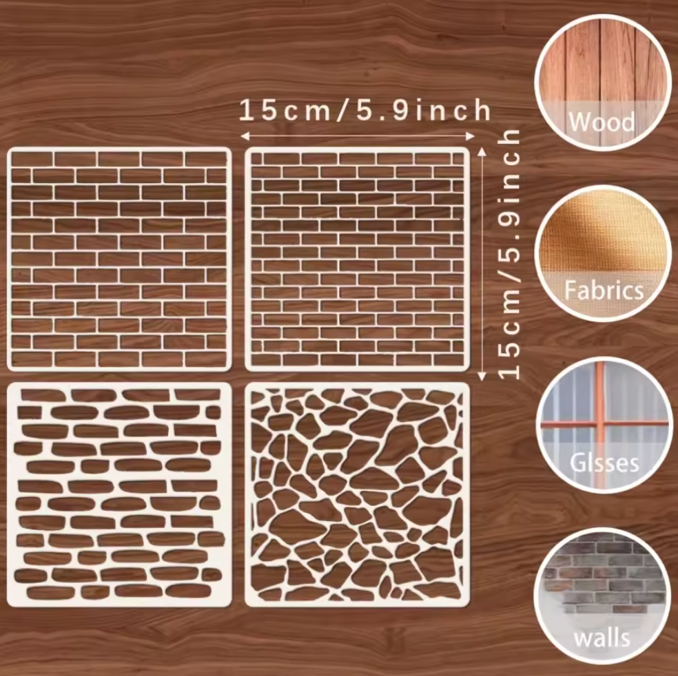 Transforma tus proyectos con los 12 Stencils Paredes & Texturas. Cada plantilla de 15cm x 15cm está diseñada para crear patrones únicos y sofisticados.