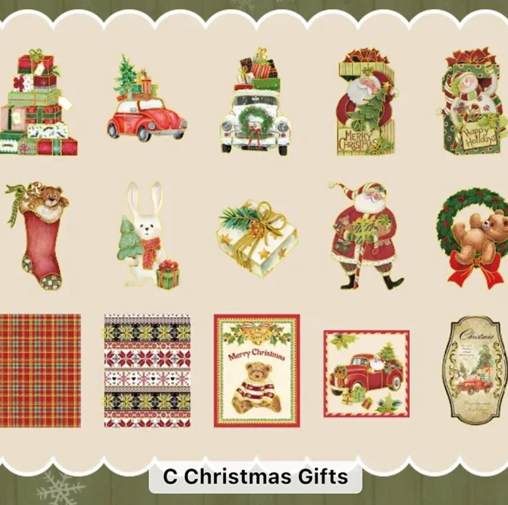 Celebra la temporada con 15 stickers navideños adornados con elegantes detalles dorados que realzan cualquier proyecto festivo. Perfectos para decorar tarjetas, regalos o agendas, estos stickers aportan un toque sofisticado y festivo que cautivará a todos. Añade brillo y alegría a tus creaciones navideñas con este exclusivo set que hará que cada detalle cuente.