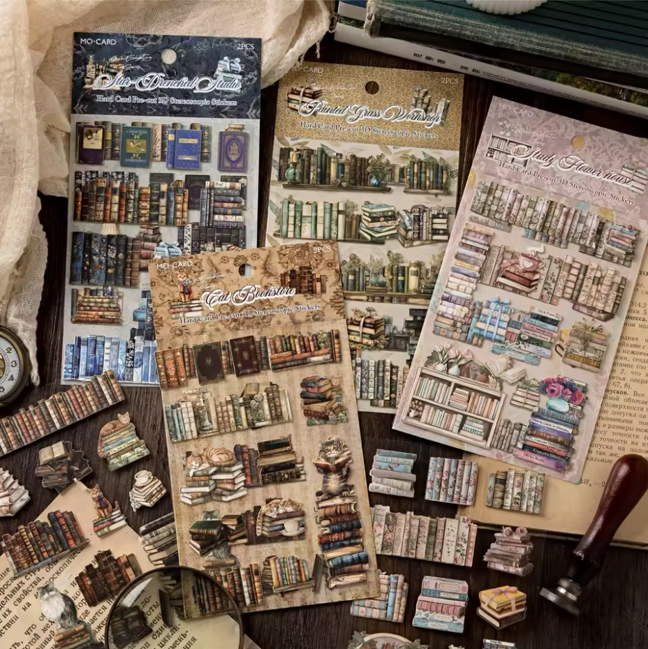 Dale vida a tus proyectos con estas 2 hojas de stickers de cartulina delgada con diseño de libros. Perfectas para decorar agendas, cuadernos o cualquier espacio creativo, son fáciles de pegar y aportan un toque original.
