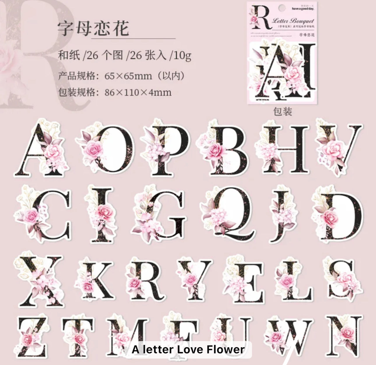 Con estos 26 stickers de letras en papel de arroz con flores, podrás decorar tus cuadernos, carpetas y más. ¡Crea palabras, frases y mensajes personalizados para expresar tu creatividad! ¡Haz que tus cosas resalten con estas coloridas letras del alfabeto!