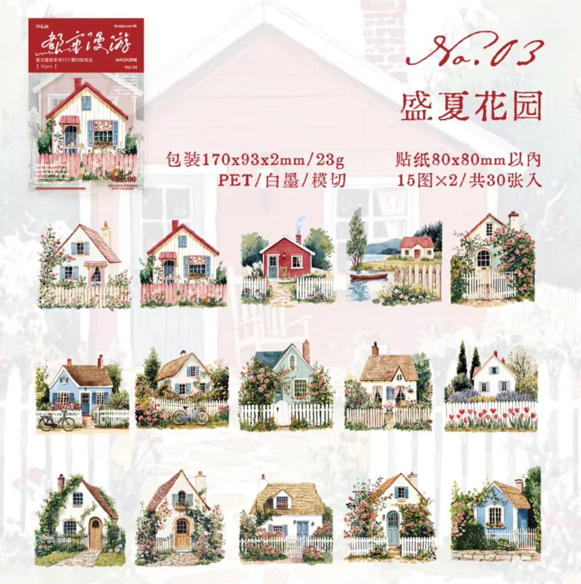 Descubre el set de 30 stickers grandes con diseño de casas, impresos en material PET transparente de alta calidad. Cada sticker mide 8 cm x 8 cm, ofreciendo detalles nítidos y llamativos que realzan cualquier superficie.