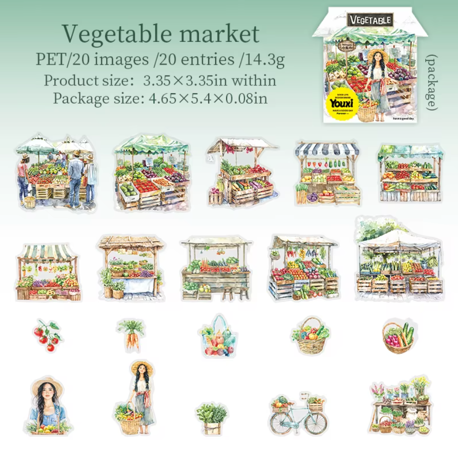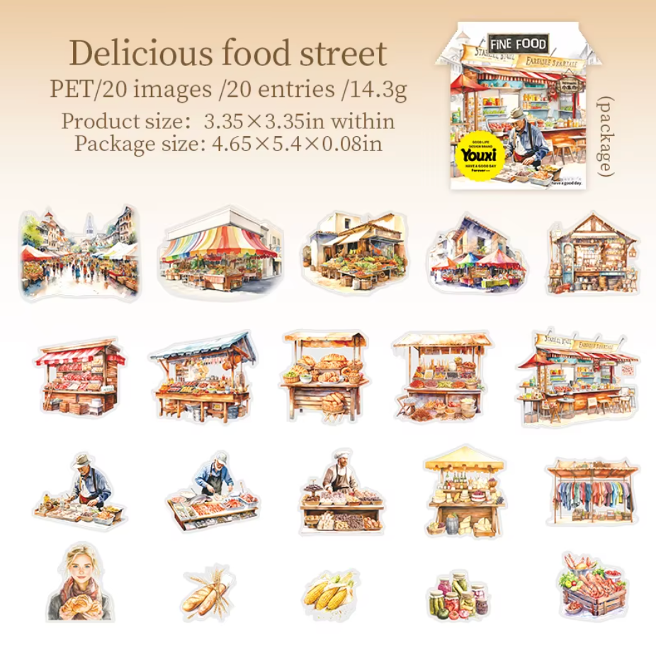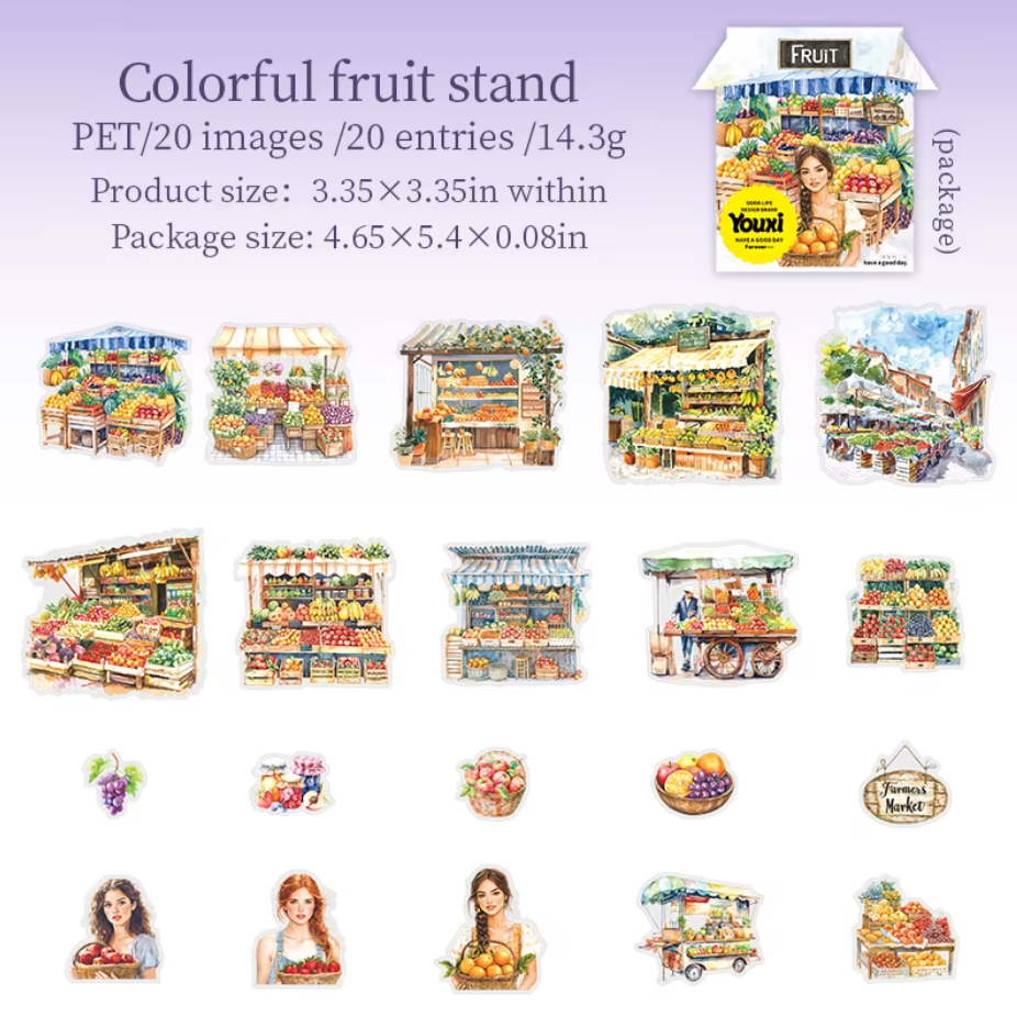 Descubre los 4 paquetes de stickers Mercado, un set de 80 stickers transparentes en total, con diseños muy coloridos y alta definición. Cada paquete incluye 20 stickers únicos perfectos para personalizar tus objetos favoritos. Llévate los cuatro paquetes juntos y dale vida a tus trabajos con estilo y calidad.