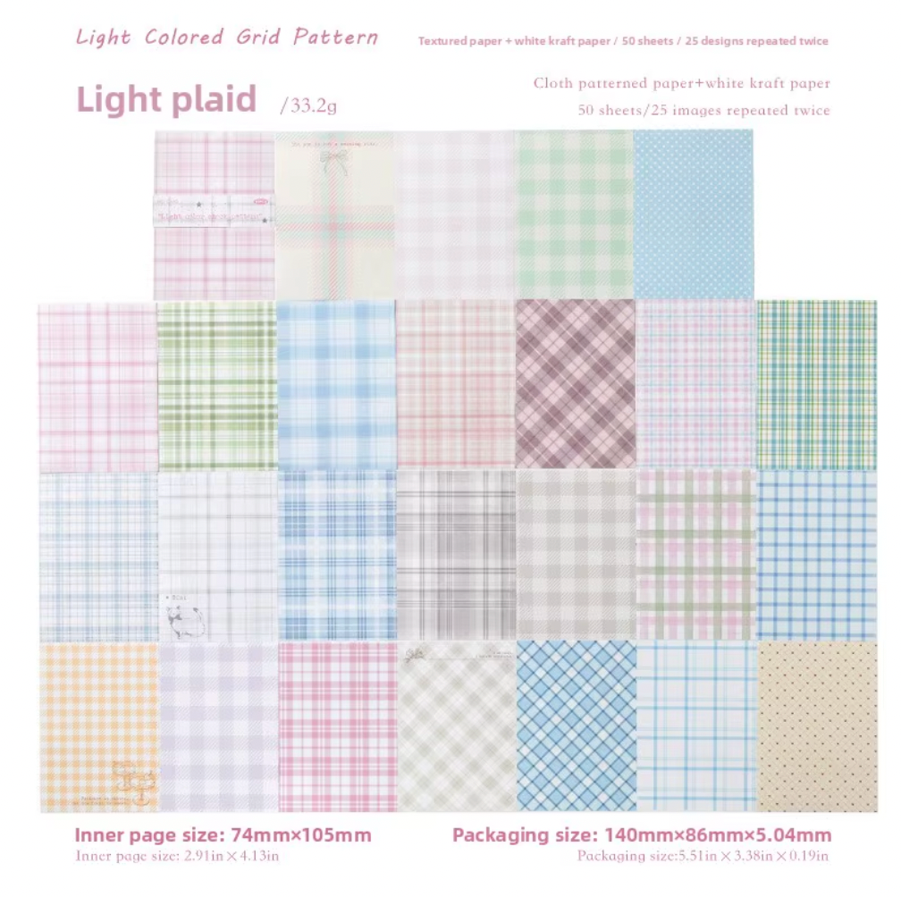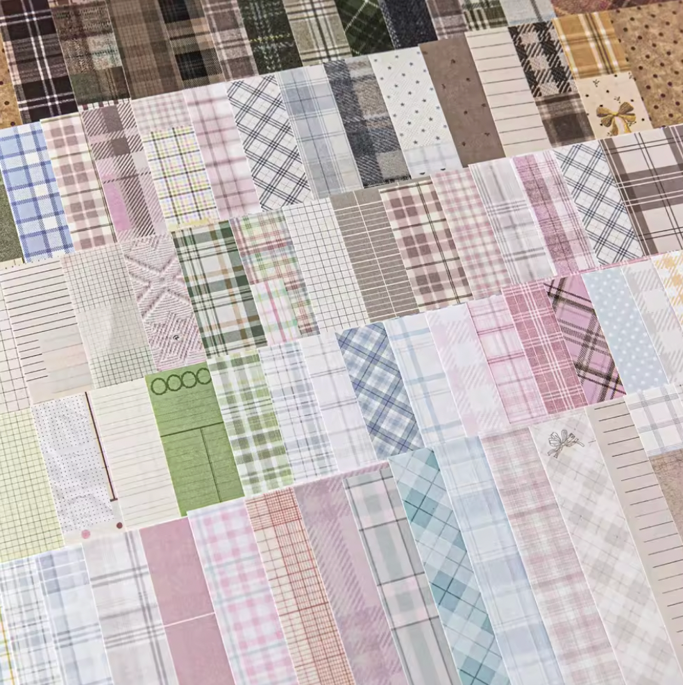 Descubre la elegancia retro con nuestro set de 50 papeles vintage con patrón de cuadros estilo tela. Cada pieza mide 14cm x 8.6cm, perfecta para proyectos de scrapbooking, tarjetas artesanales, encuadernación y decoración.