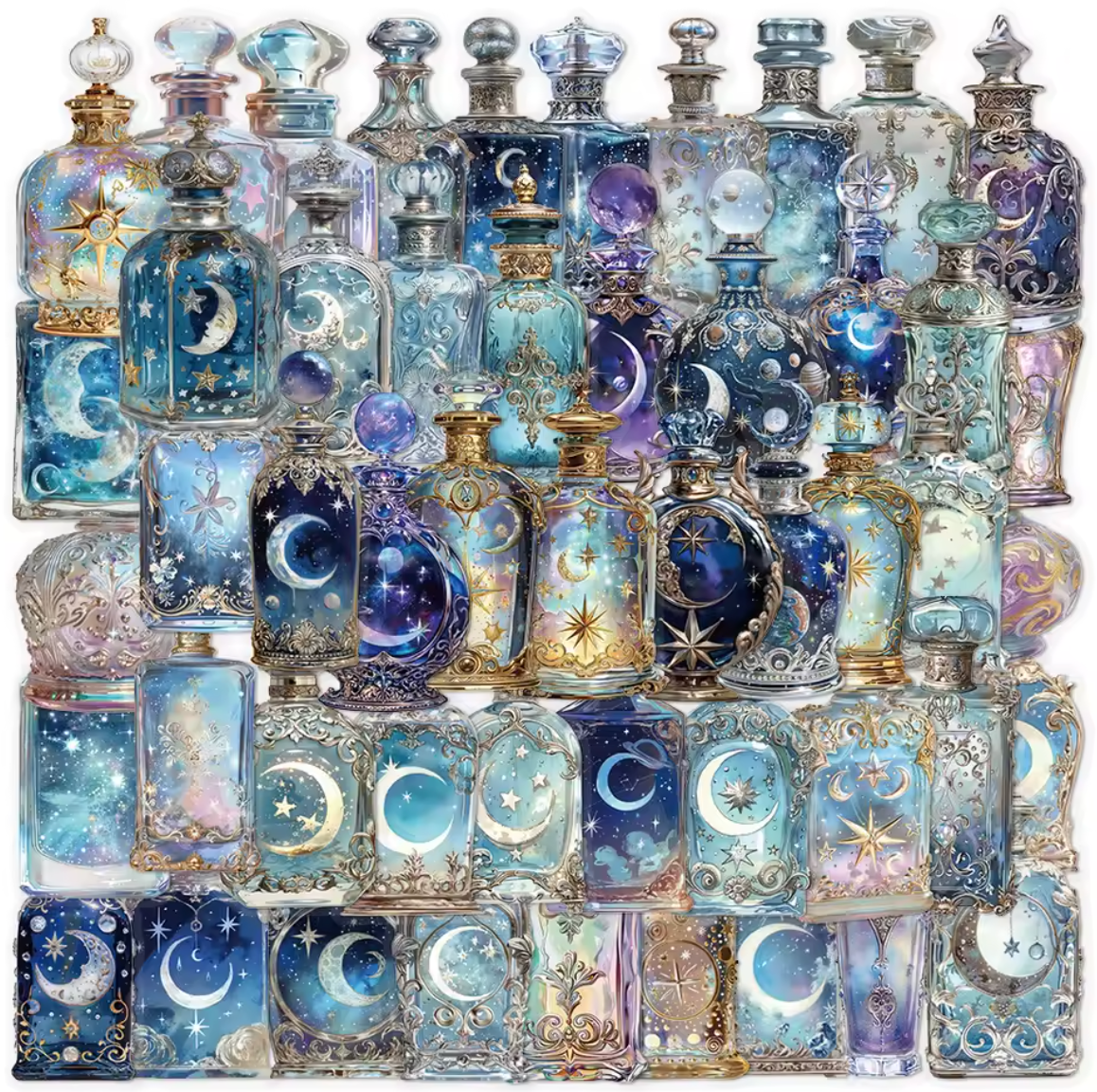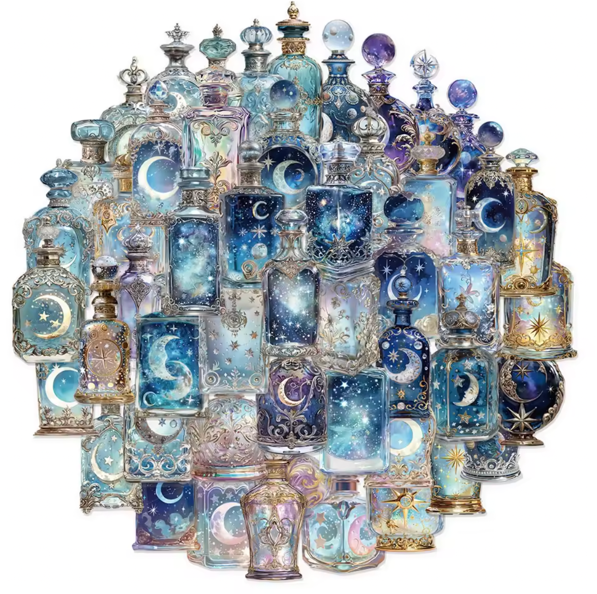 Transforma tus proyectos con esta colección de 50 stickers transparentes que capturan la magia de frascos místicos. Cada adhesivo mide aproximadamente 5cm x 5cm. Durables y fáciles de aplicar, estos stickers son la forma perfecta de expresar tu estilo único.