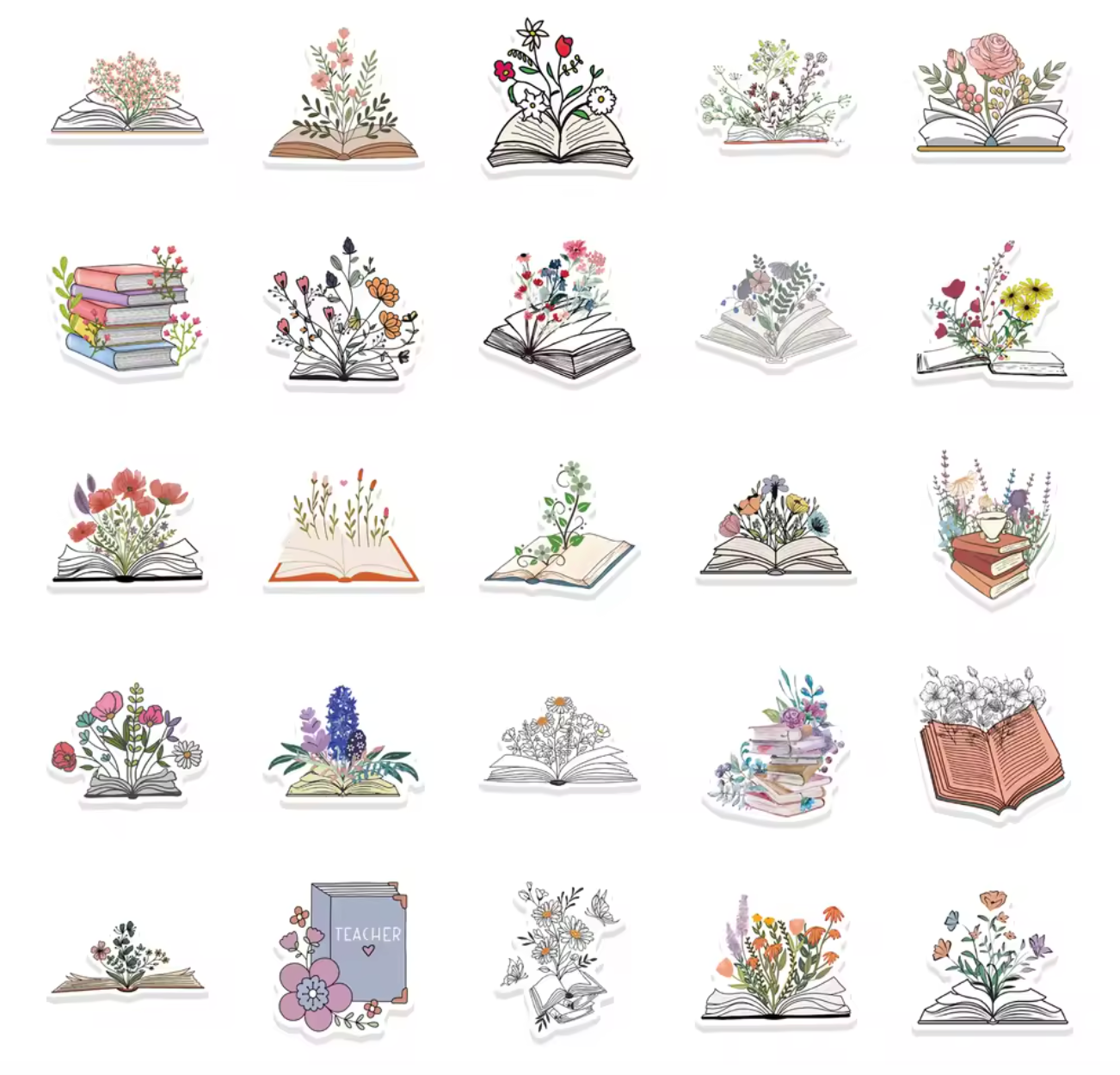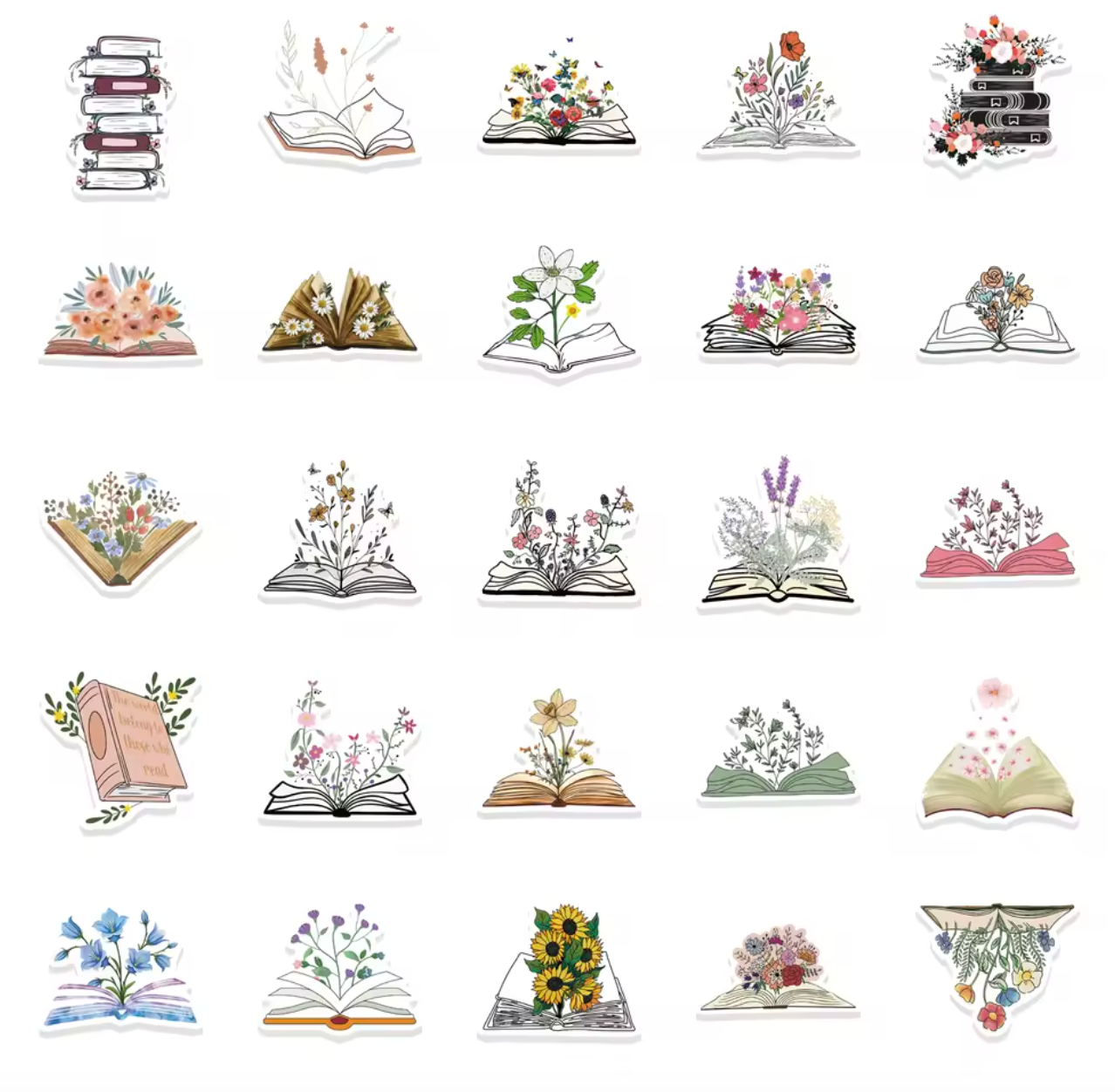 50 Stickers Vinil Libros & Flores