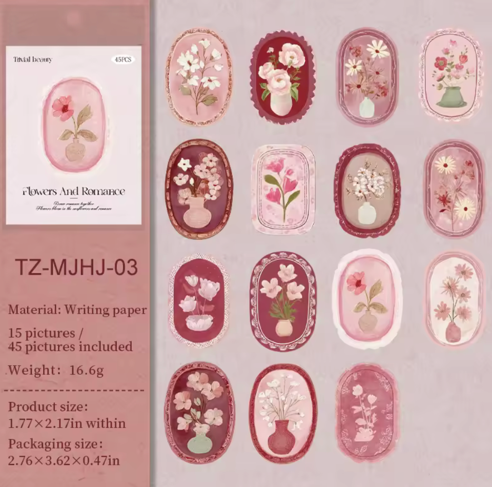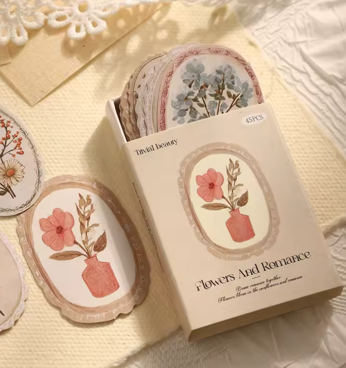 Descubre la elegancia floral en cada detalle. Esta cajita contiene 45 cartulinas premium con diseños de flores enmarcadas, perfectas para proyectos creativos, scrapbooking, invitaciones y manualidades.