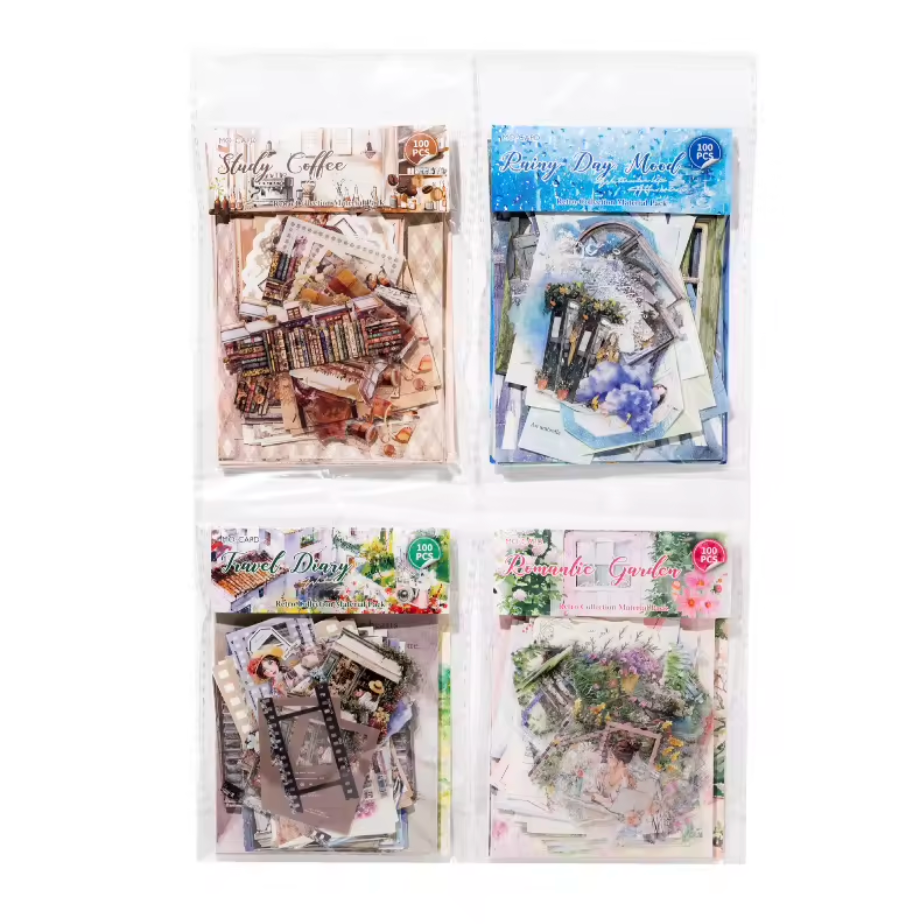 Este kit de 100 piezas ofrece una variedad completa de papeles, recortes y stickers ideales para tus proyectos creativos. Perfecto para scrapbooking, manualidades o decorar tus espacios, este conjunto te brinda todo lo necesario para dar vida a tus ideas con estilo y originalidad.
