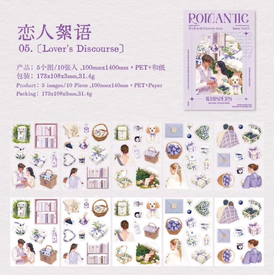 Disfruta de 10 páginas llenas de escenas románticas con este hermoso Libro de Stickers Romantic. Decora tus diarios, álbumes de fotos o regalos con estas pegatinas inspiradoras. Crea tus propias historias de amor con cada sticker y deja volar tu imaginación.